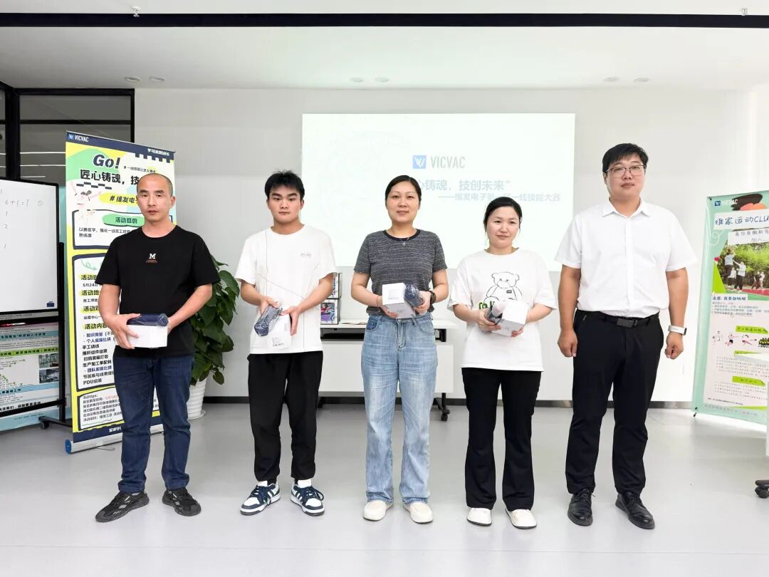 生產(chǎn)線大佬們放下扳手 化身“車間最強(qiáng)大腦” 圍坐一圈+搶答按鈴,比賽秒變“科技版圓桌會(huì)議”!題目覆蓋產(chǎn)品型號(hào)、產(chǎn)品參數(shù)、產(chǎn)品檢查、安全事故預(yù)判,甚至有人被問到“PDU外殼導(dǎo)熱系數(shù)精確到小數(shù)點(diǎn)后三位”! ?!?/strong> 按鈴聲炸裂,最終“二樓按鈴戰(zhàn)神*以6次搶答+零失誤橫掃全場(chǎng)! 是誰? 文末線索競(jìng)猜! 知識(shí)戰(zhàn)結(jié)束 螺絲刀戰(zhàn)士們沖向車間 開啟“手速瘋狗模式” 賽點(diǎn)1 物料配件·200份生死局 每人面對(duì)200份混裝物料,需在40分鐘內(nèi)精準(zhǔn)分揀電阻、電容、卡簧! “拿錯(cuò)一個(gè)扣5分!”某大神上演“無影手”,37分鐘8秒搞定,質(zhì)檢員顫抖:“這眼睛是裝了紅外掃描嗎?!” 賽點(diǎn)2 掃碼裝箱·強(qiáng)迫癥終結(jié)者 掃碼-裝靜電袋-封箱-貼標(biāo),單產(chǎn)品全流程限時(shí)10分鐘! 一位小哥哥手持PDA,操作0誤差,封箱膠帶切口平直如尺,評(píng)委感嘆:“這手法,機(jī)器都得喊聲老師傅!” 賽點(diǎn)3 雙機(jī)繞線·真·左右互搏 一人控兩臺(tái)繞線機(jī),5分鐘狂繞產(chǎn)品內(nèi)線圈! 線圈松緊度誤差≤0.05mm,某黑馬選手左右手同步操作,繞出“鏡像對(duì)稱線圈”,電阻值波動(dòng)堪比實(shí)驗(yàn)室數(shù)據(jù)! 賽點(diǎn)4 卡簧組件·30連裝終極手速 從推桿組件→軛鐵→彈簧→動(dòng)鐵芯→卡簧,30套組件安裝限時(shí)5分鐘! 老師傅單手壓彈簧,卡簧“咔嗒”入槽聲如節(jié)拍器,裁判掐表驚呼:“3分鐘45秒!這手是液壓機(jī)成精了?” 節(jié)能板焊錫 兩人組焊出5個(gè)“藝術(shù)品” 一人控溫焊臺(tái),一人持鑷子精準(zhǔn)點(diǎn)錫,5套產(chǎn)品焊點(diǎn)光滑如鏡,X光檢測(cè)0氣泡! 冠軍組放狠話:“我們的焊點(diǎn),連電子顯微鏡都找不到茬!” PDU組裝 雙人極限流水線 底座壓裝→布線→測(cè)試,兩人13分鐘裝完一臺(tái)PDU! “萬用表檢測(cè)通過!”“絕緣電阻>100MΩ!”——?jiǎng)俪鼋M產(chǎn)品通電瞬間,評(píng)委集體起立鼓掌:“這效率,生產(chǎn)線得連夜改SOP!” 當(dāng)獲獎(jiǎng)?wù)吲e起獲勝獎(jiǎng)品,車間響起《鋼鐵洪流進(jìn)行曲》BGM! 個(gè)人賽王者手持獎(jiǎng)杯:“200份物料而已,我還能再戰(zhàn)三輪!” 團(tuán)隊(duì)賽冠軍組擺出焊槍交叉POSE:“下次挑戰(zhàn)焊0.01mm漆包線!” ▲維發(fā)知識(shí)獎(jiǎng) ▲維發(fā)匠心獎(jiǎng) ▲最佳團(tuán)隊(duì)協(xié)作獎(jiǎng) 維發(fā)宣言:中國(guó)智造,從一顆螺絲釘?shù)木髲?qiáng)開始。 這場(chǎng)大賽,有人37分鐘揀200種物料,有人焊錫誤差不超頭發(fā)絲直徑——但比技術(shù)更燃的,是維發(fā)人眼里那團(tuán)火:“流水線上沒有差不多,只有必須100%!” 下一屆 等你來定義車間的極限 維發(fā)電子科技 用精密致敬匠心 以創(chuàng)新焊接未來 關(guān)注我們 看工程師如何把“硬核”寫成詩(shī)